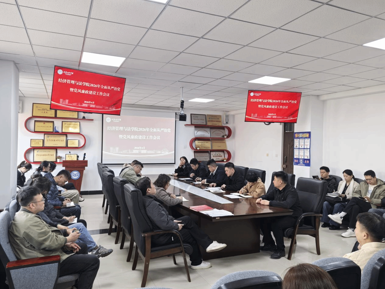 2026年4月1日,经济管理与法学院党委在教学D407会议室召开全面从严治党暨党风廉政建设工作会议。会议由学院院长安玉兴主持,学院班子成员、全体教师党员及部分学生党员代表参加会议。